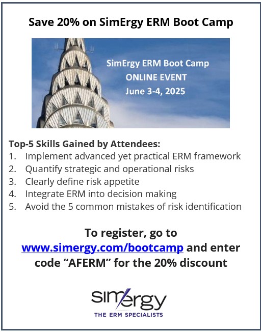 U.S. Policy Emerges as Major Political Risk: This article concludes that nearly 60% of companies are expecting negative financial impact from the current U.S. trade policies, which has emerged as a leading political risk, matching losses from Ukraine conflict. The results are based on a new survey conducted by the Willis firm, which found that for 74% of global companies, political risk has become a top five ERM risk. Read the article here.